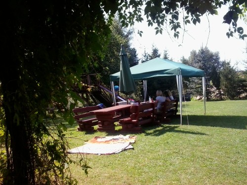 Oferujemy noclegi w pokojach z dostępem do dużej kuchni lub w odrębnie stojącym domku parterowym - dwa mieszkania z łazienkami i aneksem kuchennym oraz sala z kominkiem.